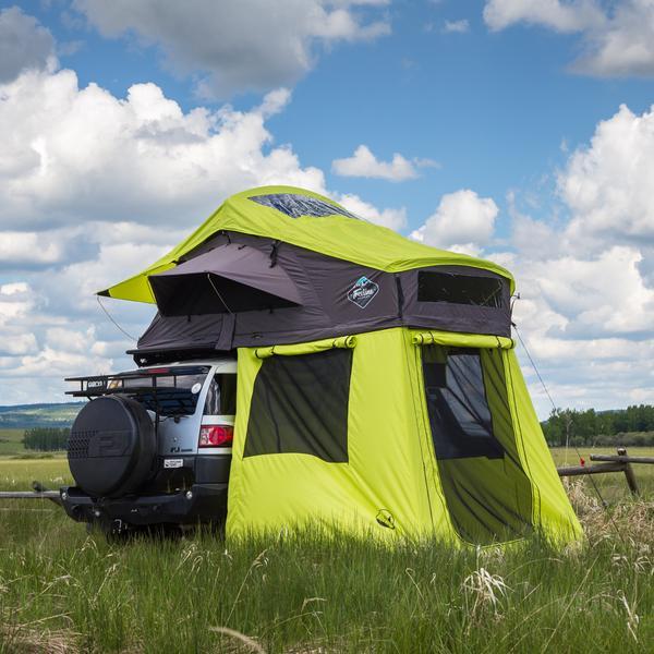 Es verfügt über eine robuste, ultraleichte Aluminiumwabenbasis (Honeycomb), die stärkste und langlebigste Dachzeltbasis auf dem Markt. Aluminiumstangen mit 2 Millimeter Wandstärke machen das Tamarack sowohl leicht als auch besonders robust. Und es kommt mit Treeline's übergroßen zum Patent angemeldeten Markisenfenstern, die für uneingeschränkte Aussichten aufgerollt werden können.
